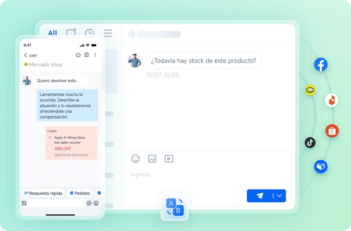 Gestiona todo el proceso posventa: reseñas, cancelaciones de pedidos y reembolsos.