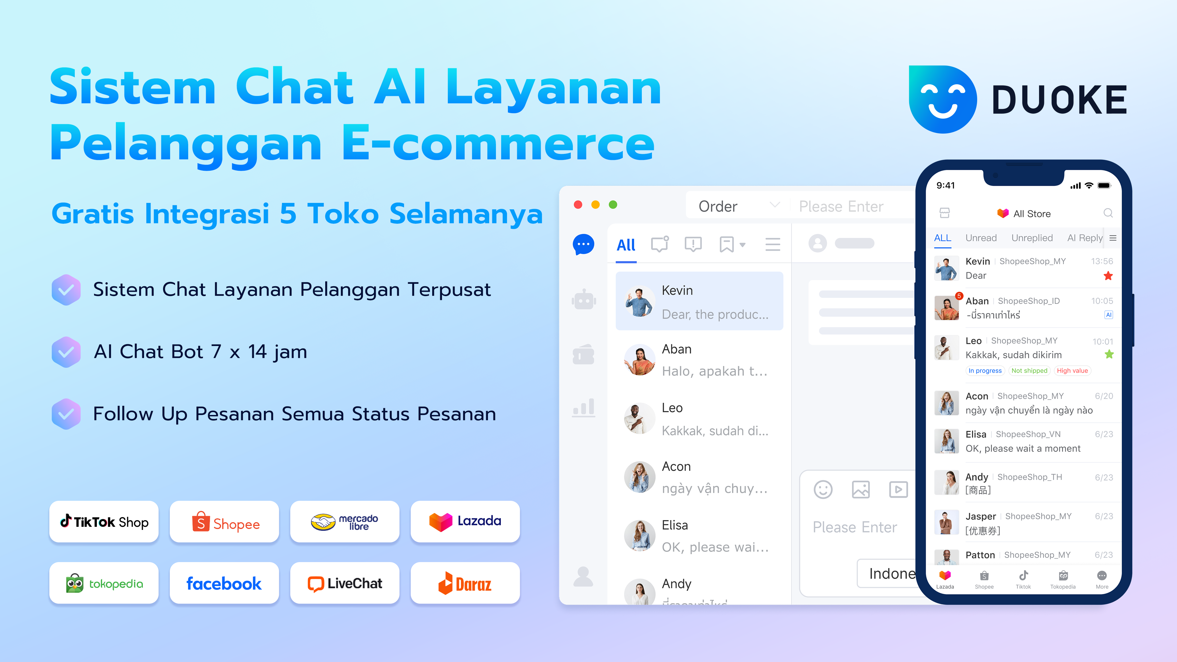 Biar performa toko Anda tetap terjaga anda juga harus mengunakan fitur power full seperti Duoke AI chatbot, dengan fitur balasan otomatis dapat membalas chat secara otomatis, sehingga dapat terus menjaga performa toko tetap baik. Bagi pengguna yang ingin coba ada kabar baik nih, Anda dapat mengunakan Duoke Secara gratis, ayo buruan claim VIP gratis!