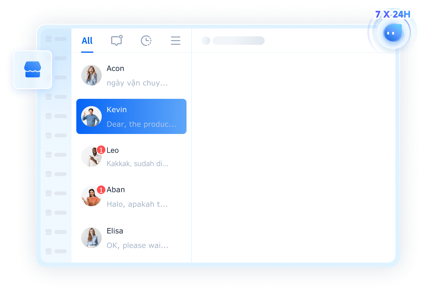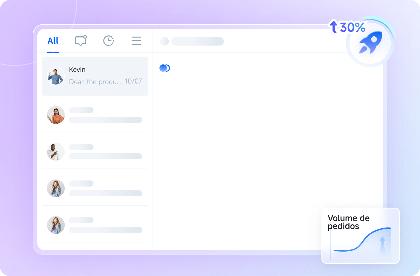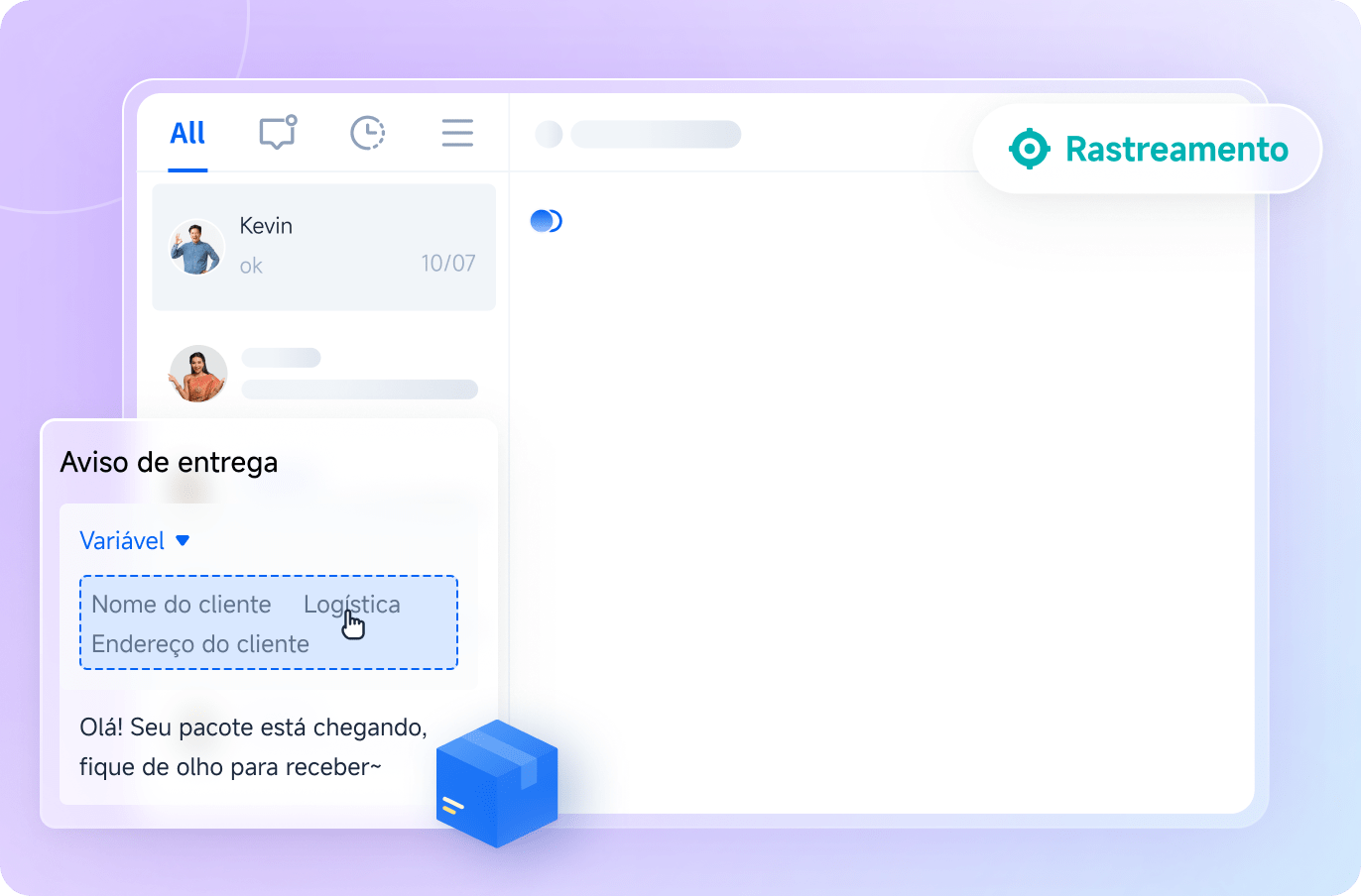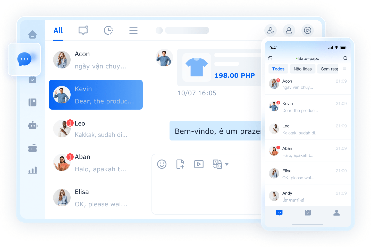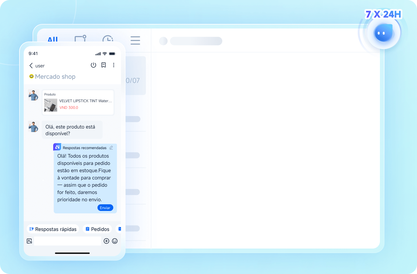 Integra conversas e pedidos de múltiplos canais, cobrindo todos os estágios — pré-venda, venda e pós-venda.
