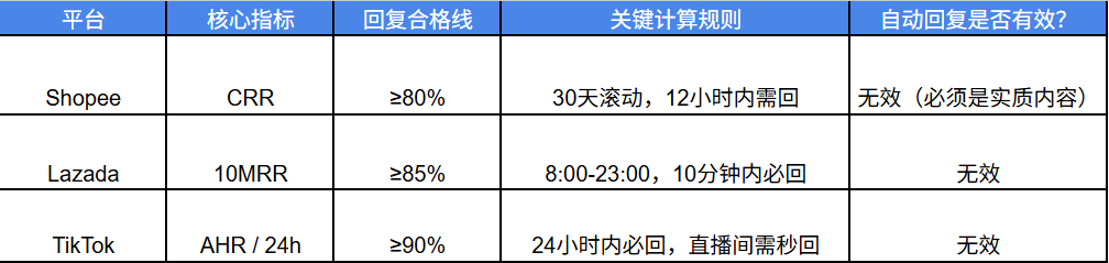 更棘手的是,Shopee、Lazada、TikTok Shop 均已建立严格的客服响应考核机制——回复率低不仅影响买家体验,更直接拖累店铺评分、搜索排名和大促报名资格。