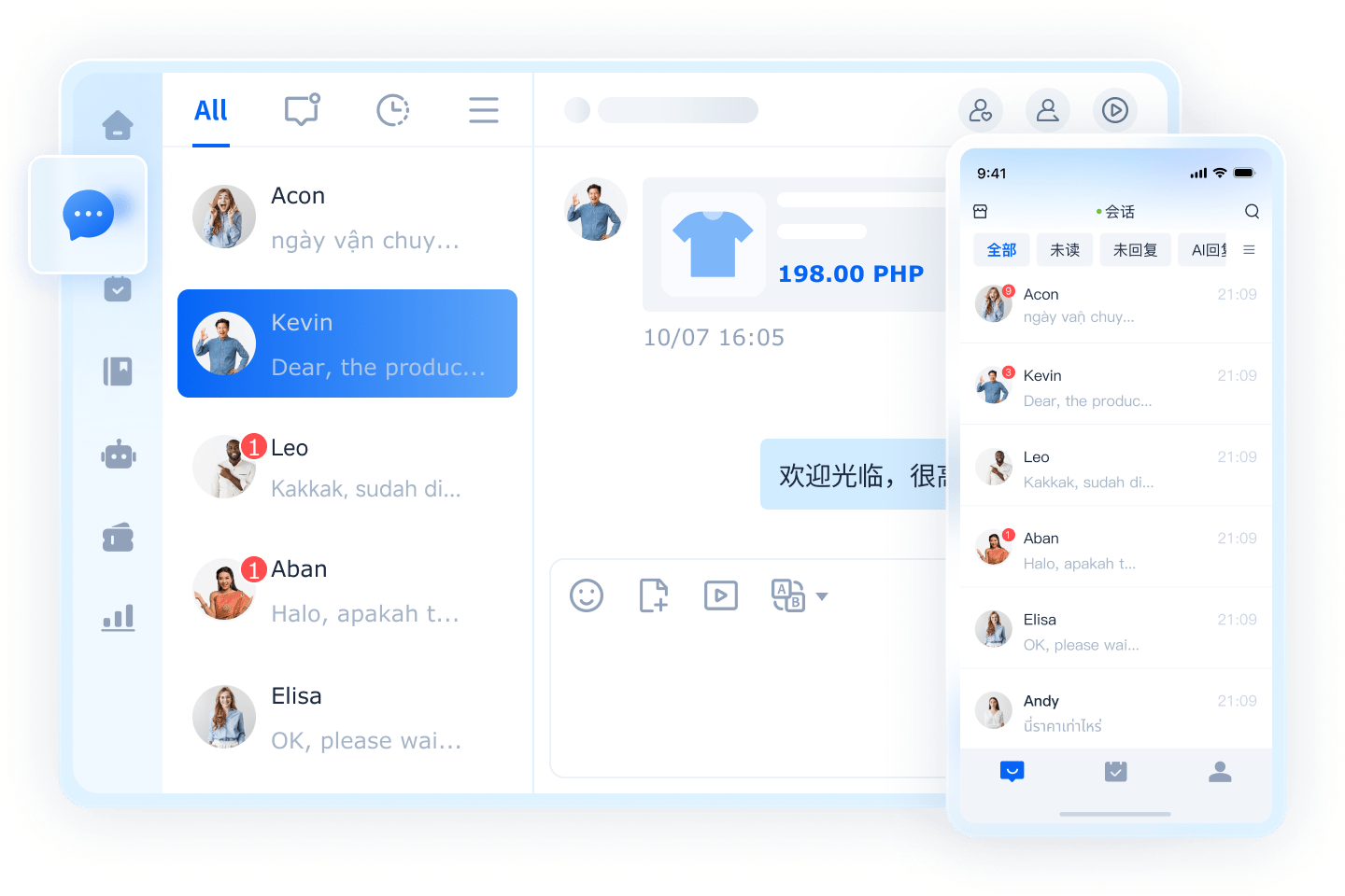 APP 和 PC 双端结合,快捷回复、买家标签、客服分流等多种工具提升客服效率,实现随时随地回复买家消息
