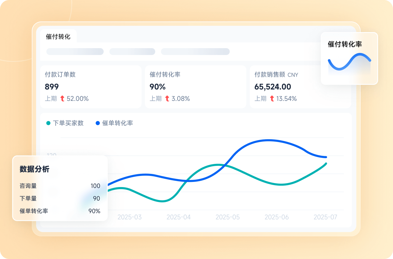 智能挽回弃单,减少商品及运费损失;自动邀请好评、管理中差评,提升 13% 的店铺好评率